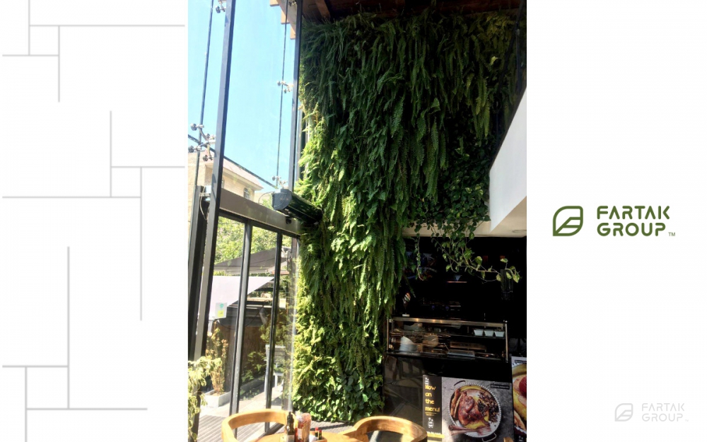طراحی و اجرای دیوار سبز رستوران زیگزاگ